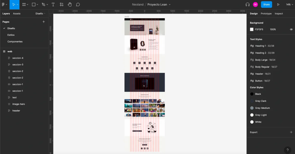 The prototyping was created using the Figma tool following Bootstrap guidelines with a 12-column grid, each column being 65 px wide and having a 24 px gutter.