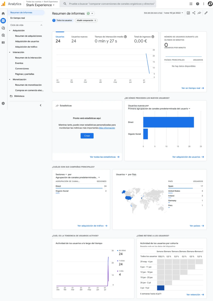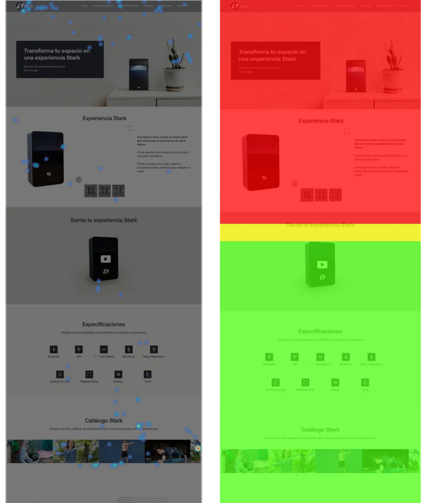 In order to reach the target audience, I set several objectives that we were going to measure through KPIs for Stark Experience using tools like Hotjar, Google Analytics, and lead capture with a newsletter. In the end, I’ve obtained the following results. Here, we could also see that up to 60% of users scrolled all the way to the bottom of the page.